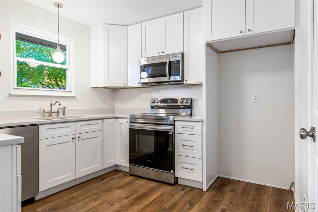 Back on market at no fault of the seller. This beautifully renovated St. Peters home sits quietly at the end of a cul-de-sac and blends comfort with high-quality design. The kitchen features quartz countertops, shaker cabinets, stainless steel appliances, and elegant fixtures. The primary suite includes a walk-in closet and a finished en-suite bath, while two additional bedrooms offer ample closet space.